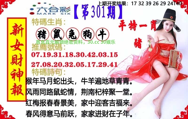 303期:必中天机/特七决/正版欲钱料/特码生肖诗/澳门天机诗